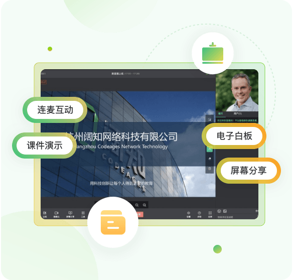 電子白板、多人連線、屏幕共享、在線答題,為企業提供更省錢、更流暢的教學直播能力。